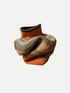 This stunning handwoven decorative basket is a true work of art, blending traditional weaving techniques with contemporary design. Featuring a dynamic, wavy structure and intricate patterns in earthy tones, it stands as a testament to the skill and creativity of its maker. The natural fibers used in its construction highlight its eco-friendly origins, while the bold black rim adds a modern finish.