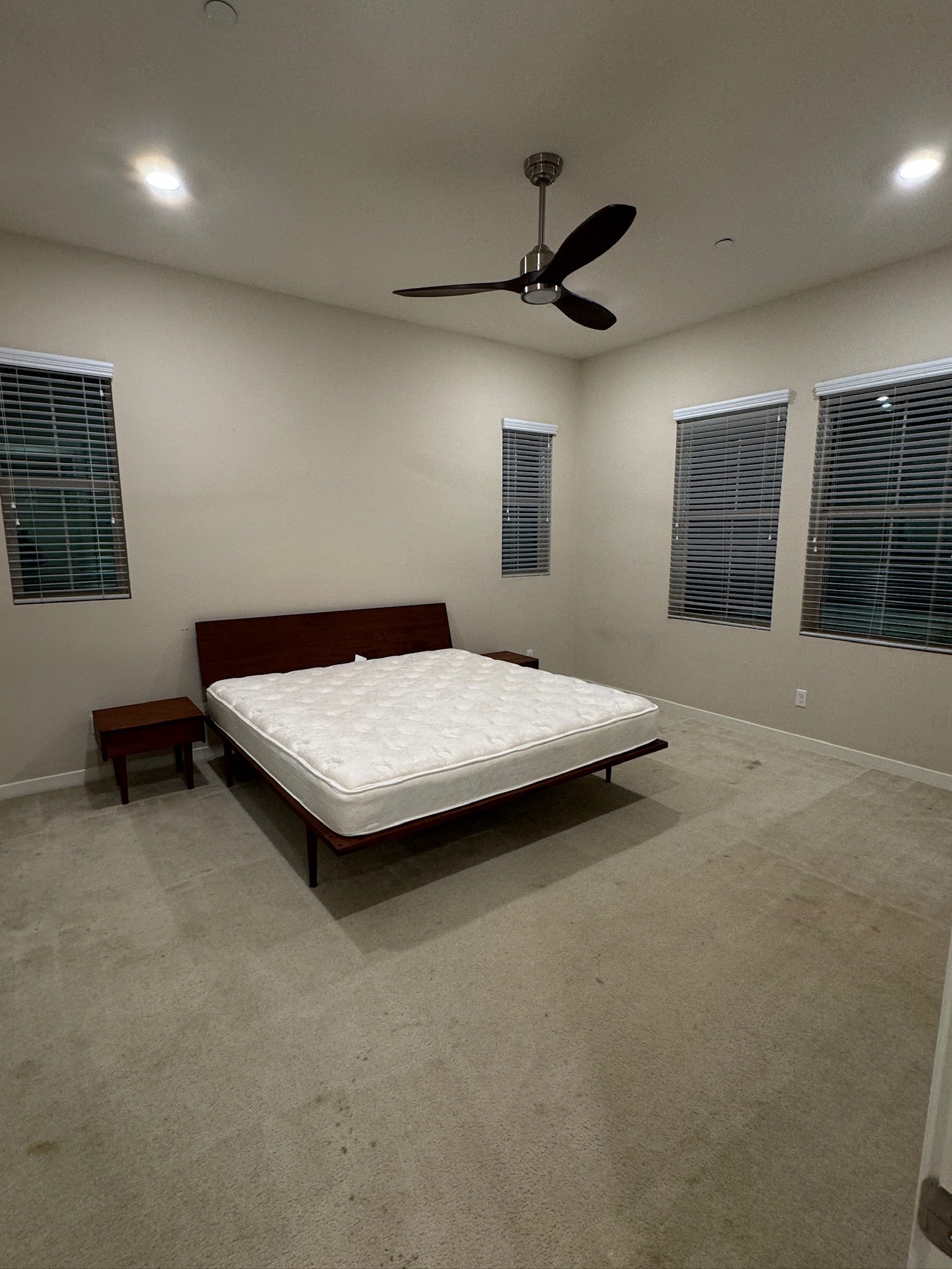 This staging project showcases a cozy, open-concept living space that seamlessly integrates comfort and style. The room features a plush gray sectional sofa adorned with soft pillows, facing a modern black-framed TV. Natural wood elements, including a rustic console table behind the sofa and a large woven vase with pampas grass, add warmth and a touch of organic texture. The adjoining kitchen area with sleek dark cabinets and a granite island provides a chic contrast, while the dining space with rattan chairs adds a casual yet elegant vibe. Thoughtful decor accents, like candles and greenery, enhance the inviting atmosphere, making the space perfect for relaxing and entertaining.